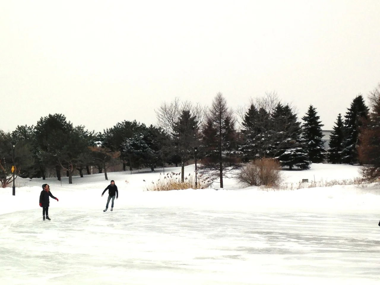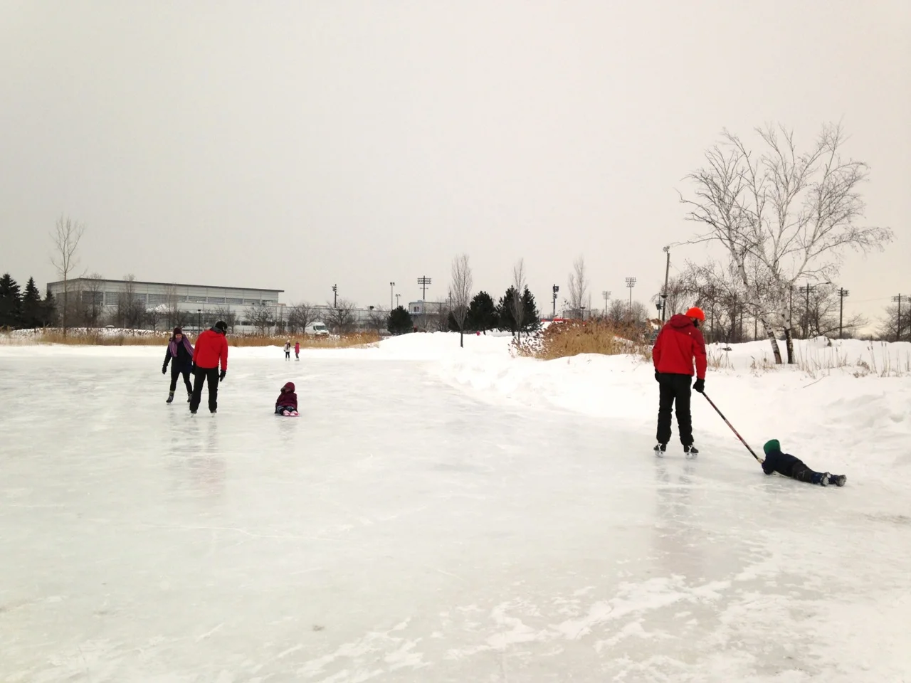 We first saw people snowshoeing, then watched as skaters very gracefully did laps around a frozen pond. One little boy didn’t have skates, so he hung onto the end of his dad’s hockey stick (what else?) and got a ride across the ice.