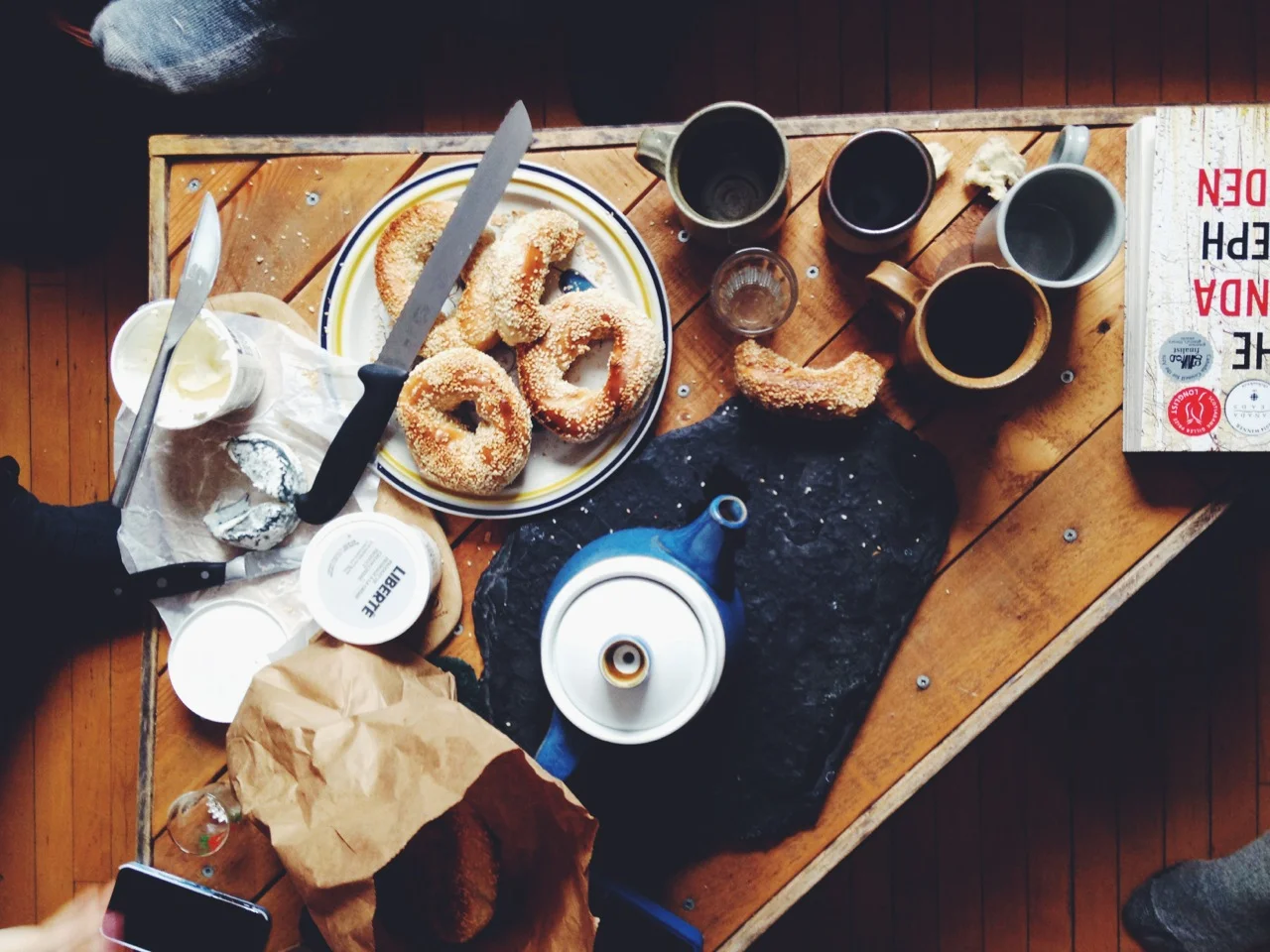 Jess had picked up a huge bag of fresh bagels and cream cheese from St. Viateur, and we made a wonderful, sesame seed mess.