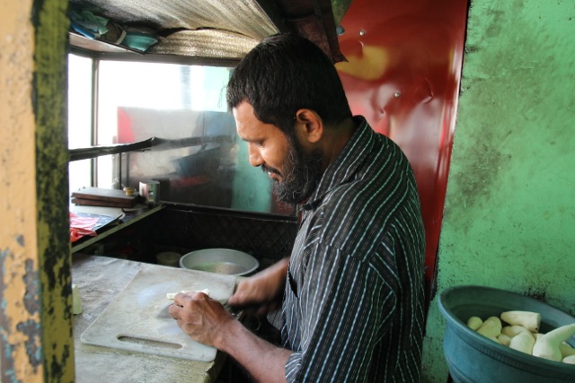 After the market, we wandered down the street and met Mohammed, a Muslim street food vendor who’d just returned from the mosque.